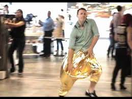 Μια ομαδα χορευτων με φαρδια παντελονια μπαινει σε ενα καταστημα και αρχιζει να χορευει και ολοι να τουs κοιτανε ξαφνιασμενοι